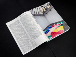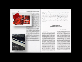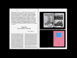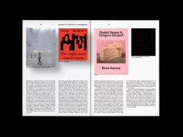 Pour la parution du 6e numéro, nous avons réinterprété la maquette créée en 2002 en accentuant ses caractères les plus reconnaissables. Cette revue dense dont les proportions texte-images sont très irrégulières impliquait de trouver une solution fonctionnelle et vivante. Le parti-pris a été de donner une grande rigueur à l’enchaînement des textes théoriques et des interviews, mais de s’affranchir de cette rigueur par l’introduction arbitraire des images qui viennent perturber cette grille, jusqu’à flotter au dessus des textes. Dans la partie Portfolio, une place maximale est donnée aux œuvres d’artistes et aux vues d’expositions avec des photos plein cadre pour une grande immersion.